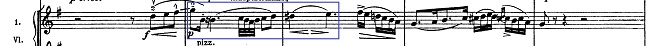 再來的法國號(0:31),讓人想到第九號交響曲的第二樂章?第二主題轉到屬調D大調(1:38),聽來有點熟悉又說不上來,我發現,這是第一主題的倒影,有許多長-短節奏: