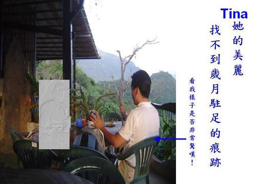 我禮貌性的起身,走到與她一個手肘的距離,輕聲喊Tina。