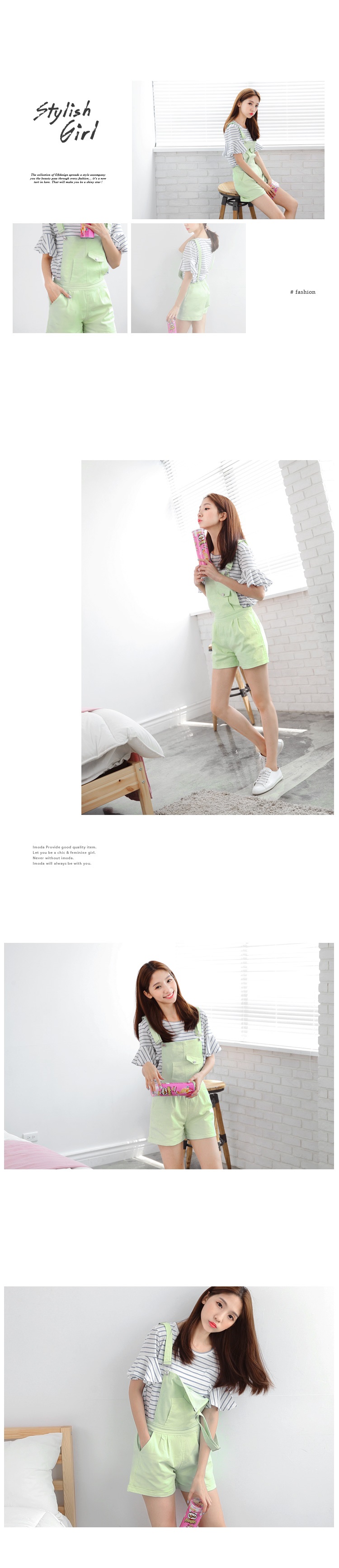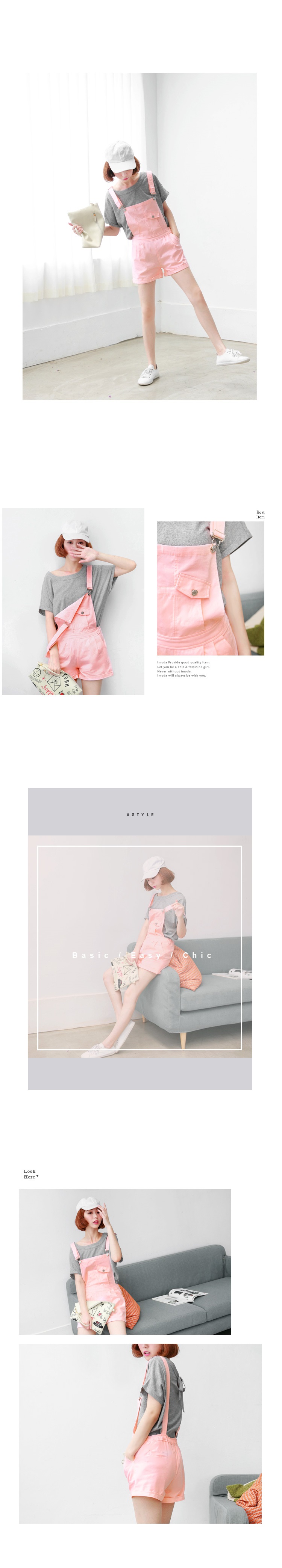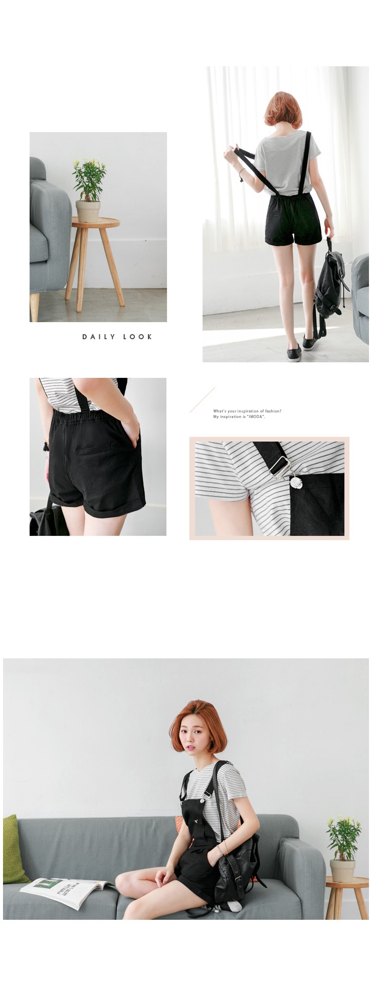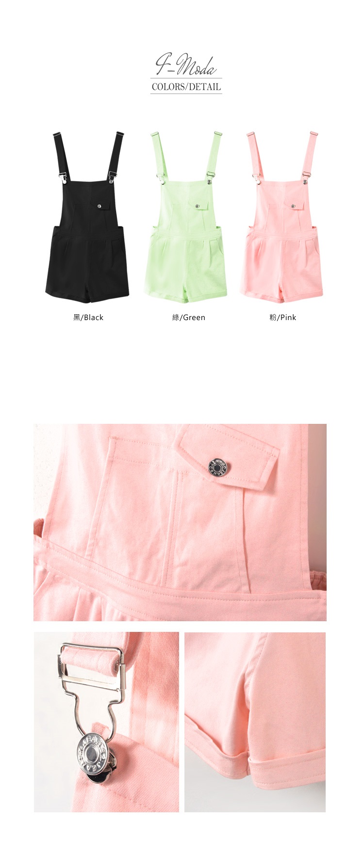 0622新品 素色口袋造型打褶腰鬆緊吊帶短褲.3色