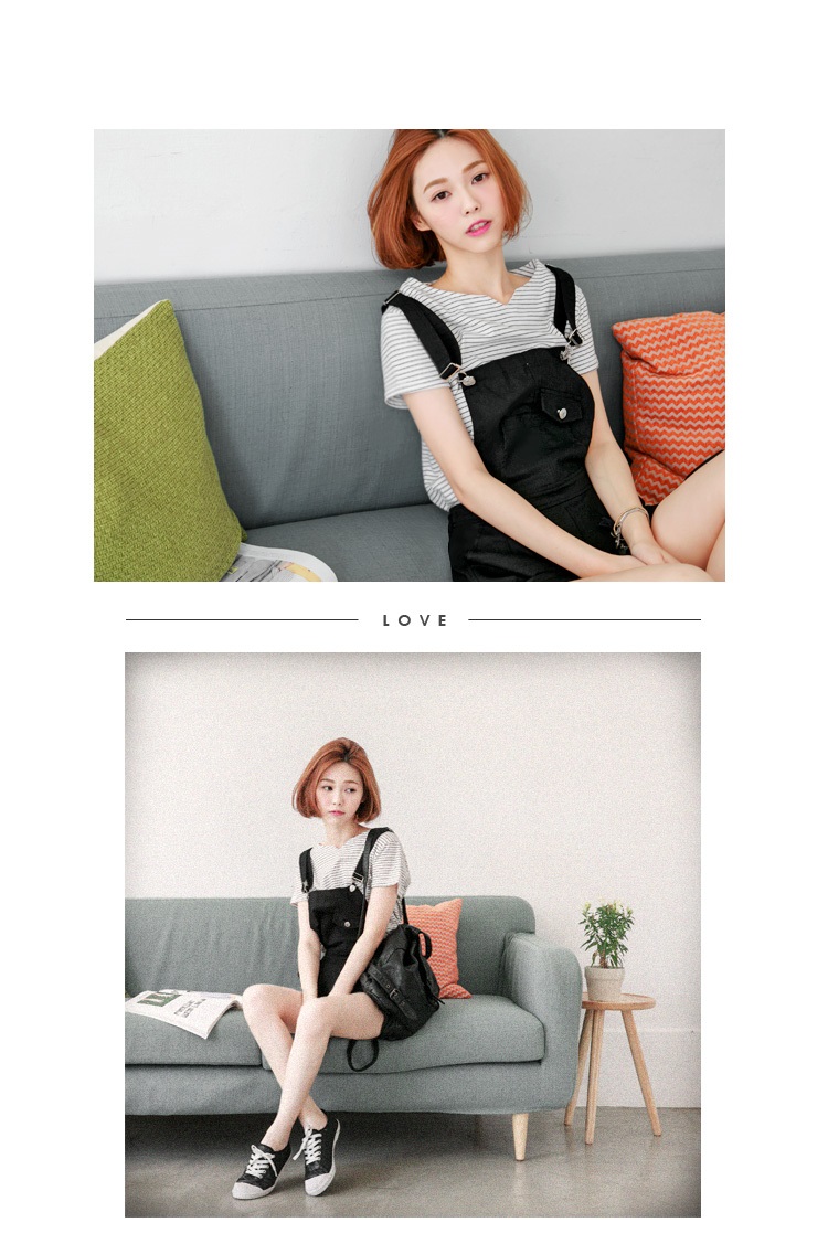 口袋造型為假、後口袋為假、腰圍半鬆緊、吊帶可調、反褶褲管不可放