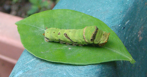 我下班了,那隻毛毛蟲依然處在原地,慈悲心,讓我順手摘下一片樹葉,試著把毛毛蟲捉起來放到鮮綠滋潤的樹葉上,讓毛毛蟲繼續成長,可是我的抓蟲功力似乎不是很好,不是蟲沒捉好,讓蟲突然從手中掉出來,就是把蟲放到葉子上之後,蟲自己沒捉好樹葉,滑了下來,一頭撞到陸地,