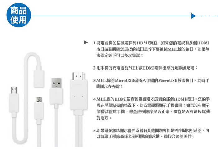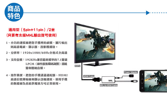 >點進入 【行動高畫質傳輸】MHL轉HDMI 影音傳輸線(通用型 2米 全新盒裝 MicroUSB TO 影音傳輸線 三星 SONY HTC) 享折扣
