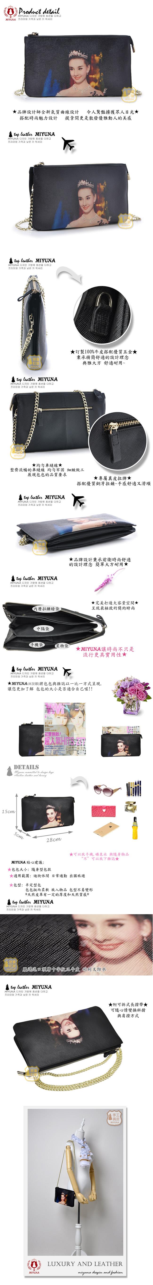 【MIYUNA】赫本典雅三袋口進口真皮包-魅力黑評價