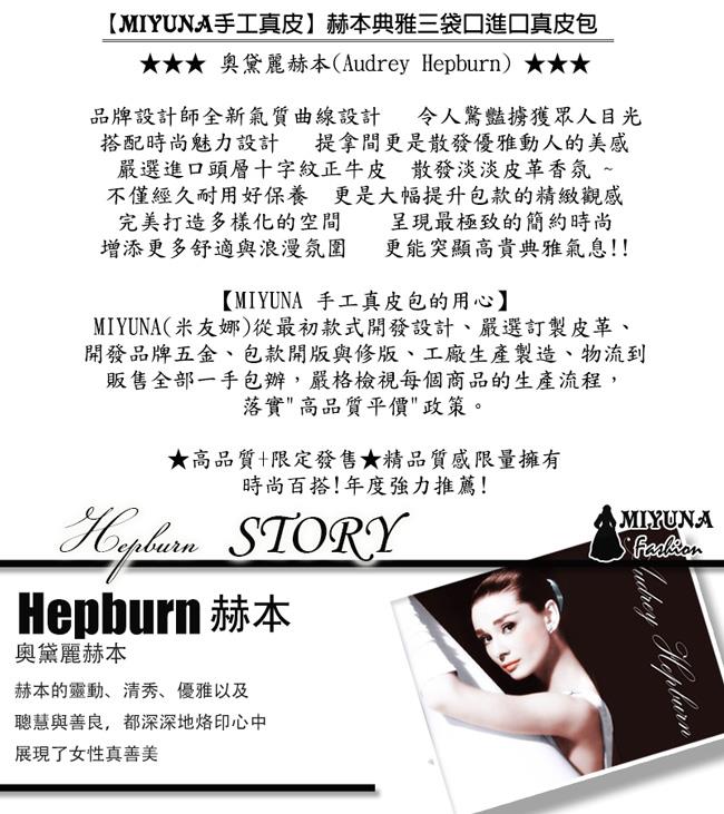 【MIYUNA】赫本典雅三袋口進口真皮包-魅力黑好物推薦