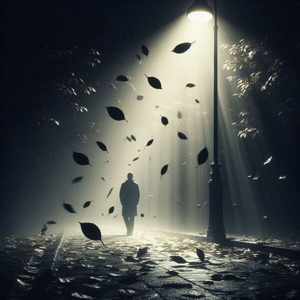 白描式:「腳步聲迴響暗巷空蕩蕩」帶出孤寂氛圍。