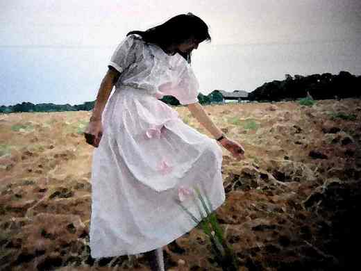 女孩就彎下腰在樹下烤蕃薯昇起裊裊炊煙