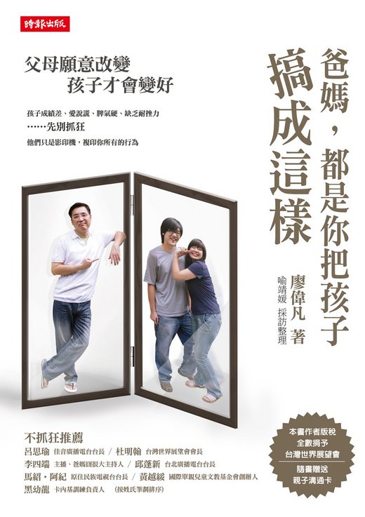 這本書記錄著廖偉凡這些年來的所有體悟、所有失誤和所有感謝。跟孩子們共同經歷過的大事、小事、甚至無聊事,期望所有父母都能輕輕鬆鬆、開開心心地,用對的方法愛孩子,享受做父母的樂趣,品嚐生命最甜美的果實。