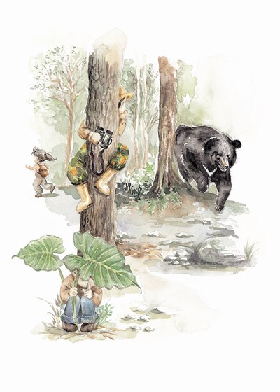 竟然輪到她整我了,我啼笑皆非,但還得把「課」上完,「如果黑熊因為這樣子暫時停了下來,我們再面對著牠慢慢的後退、後退,而且不要忘了拿出相機……」