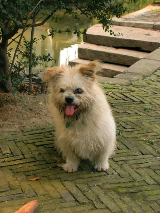 我們不覺走到路的盡頭,不得不回頭,途經來時路,心想那兩隻飽暖思淫慾的狗兒是否仍逍遙快活著,卻聽見一犬對著牠倆狂吠,伍迪式的三角戲碼活生生在眼前上演了。但見那隻白色母狗立於兩隻公狗中間,高大威猛的小黑面露不屑在右方,作勢離去,另一頭毛色有點骯髒,體型嬌小,神情可愛又可憐的白狗在右方,作勢撲來。母狗左顧右盼,東望望小黑西瞧瞧小白,一顆心搖擺不定猶豫不決,突然,小白終於忍不住,朝她狂奔而去。一靠近,她只稍稍斜睇了一眼,就頭也不回地奔向小黑,小白尾追,兩隻狗落荒而逃,一溜煙不見蹤影,只留下孤伶伶的小白在身後狂吠不止,聲聲淒切,肝腸寸斷,不忍卒聞。我們見狀便想去安慰安慰小白,走近一瞧,發現牠的右眼好似瞎了,硃砂色的舌頭吐出,喘息著。在人類眼中,是隻惹人憐愛的小狗,但在狗的世界裡,牠身患殘疾,扮演著類似武大郎的角色。潘金蓮、西門慶、武大郎在小說中的下場均慘,但狗兒們就沒那麼複雜了,小潘與小黑比翼雙飛,小白在兩個無聊人類的逗弄下,好像忘記剛剛自己被殘忍地拋棄。「萬惡淫為首」對狗而言並不適用。