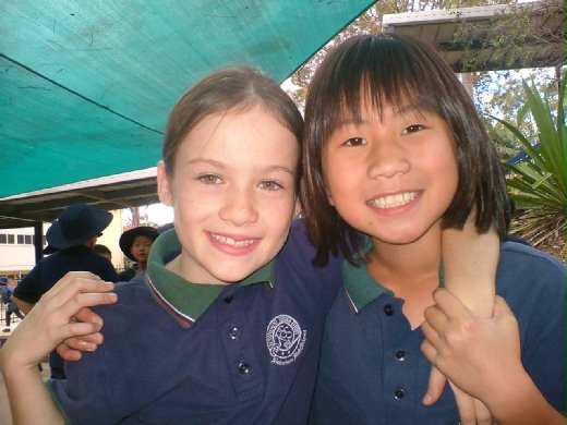 老師為了怕短期國際學生會講自己國家的語言,所以幫學生分班時特別的區格一下. 2005年我们去時,還沒有多少家長知道這些訊息, 所以讀的國際學生很少.去年(2006年)就有就20名國際學生去讀,分散在不同年級. Melody 和 Sandra 都有特別的小天使照顧他們,帶他們熟悉學校的一切. 很快的, 他们也和同學相處融洽,打成一片.