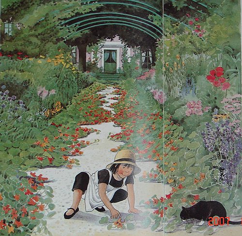 光看故事介紹就會令我血脈噴張,真巴不得自己就是小蓮,不管是在花園裡跟黑貓玩耍,在花叢間嬉戲,還是坐在莫內家廚房門前想像他們一家子用餐,或是到蓮花池還有日本橋旁坐著細細欣賞,或是隨手塗鴉亂畫…妳還可以做在莫內坐過的椅子上,照張跟他一樣的姿勢的照片留作紀念呢!