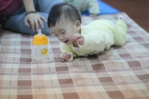第一次讓女兒趴在胸前,緊張興奮;