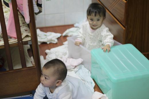 一年過去了,只有在特別的日子才會回想起雙寶他們當初過關斬將的紀錄,不然,依他現在皮的程度,怎麼樣也不會聯想到那段努力的歲月,那麼小的身軀,而現在卻是爬上爬下,鬼吼鬼叫的,還打架咧!