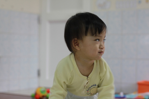 說一件比較好笑的事情,評估師拿了一個碗把一些旺仔小饅頭放裡面,要他們拿出來之後放回去,結果,雙寶別說放回去,拿了就向後轉跑開,死也不放。雙寶非常的明確表現出:『東西一旦入我手,別想我會放手』,下次要跟評估師講,這無關認知,完全是因為他們是在爭奪中成長,要他們自動把東西放下,尤其是吃的,難啊!!