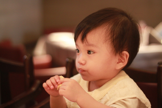妹妹自己居然一個人拿著可頌麵包默默的一口一口吃完它,中間不管谁餵她甚麼,來者不拒,結果還沒喝ㄟㄟ,肚子就撐著圓滾滾的,真是吃飽了撐著。