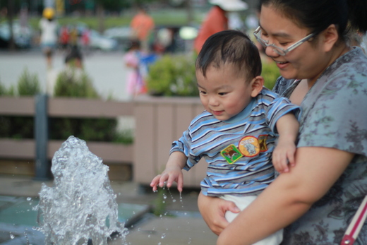 這一陣子,只要天氣放晴,假日都會帶雙寶出門,去美術館,去旗津,去一些戶外的地方,讓他們曬曬太陽,健康點,不要老是在屋子裡。不過發現他們越來越喜歡玩水,去美術館看到噴泉,哥哥就興沖沖的往前衝,妹妹也搖搖晃晃的往噴泉走過去,就是少帶了衣服,不能讓他們盡興玩,不過也夠啦!反正七月要去好好玩,屆時就可已讓他們在水池裡好好享受一下。