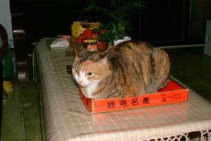 因為牠老扒著這個盒子當牠滴 [寶座],