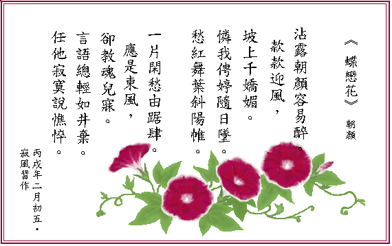 - 7樓. cease2006/03/04 10:38《 蝶戀花》–朝顏