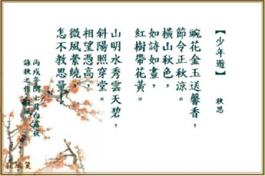豌花黃玉送馨香,節令正秋涼。橫山秋色,如詩如畫,紅樹帶花黃。