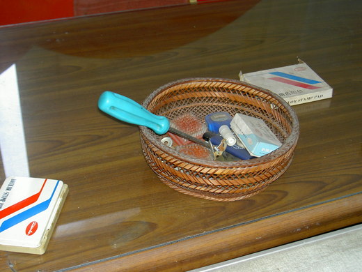忠孝路60號民宅的棄置辦公桌上的小竹簍裡(如照片1、2)。