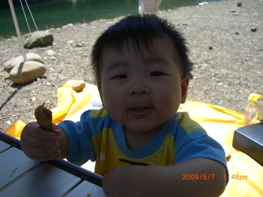 這一次有帶我家的寶貝,雖然他才11個月,卻非常的享受著大自然的沐浴。我是還好,也許從小這樣的景色看得太多,所以不會有太大的感觸,可是生活在台北都市的人卻不一樣,每天穿梭在狹小的都市空間裡,反而對自然的風光很新鮮。可當我看到小寶貝這樣歡喜的啃著雞腿,接受陽光的洗禮,甚至還想品嘗美酒,我頓時也忘記了在鋼筋混泥土堆砌起來的叢林裡的煩惱,也覺得生活很美好,這一切都是小寶貝帶給我們的。
