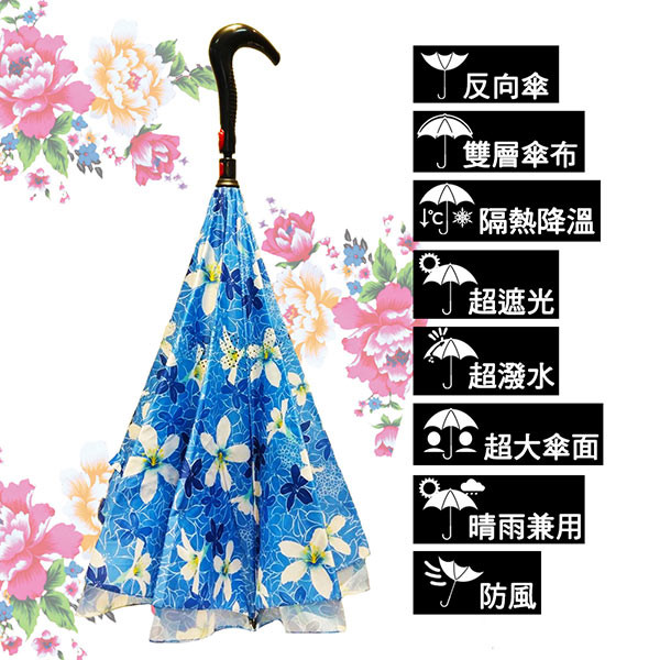 好雅也欣-雙層傘布散熱專利反向傘-浪漫台三線-客家桐花系列(藍花)