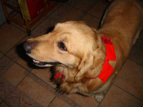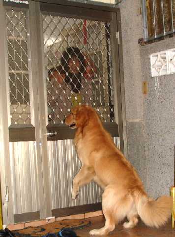 但我們家的黃金萊德可就不一樣,不但是媒體上的寵兒,狗朋友更會是今年的當紅炸子雞!為了讓一家人子一起團圓,黃金萊德也第一次回到老家過年。老家只有個小庭園,加上外面雨水答答不停,活動範圍受侷限之下,萊德不時爬上鋁門往屋內望,好像電視廣告裡拿著手機頻頻問自己的主角,「現在我在網內嗎?」啊,不是啦...........