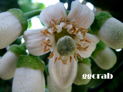 西施柚子花開得粗勇,雄蕊雌蕊相當分明,給人的感覺就是壯,擔當金蘭大姊頭義不容辭,連樹木成長的速度,別人也是望塵莫及,懷疑是不是萊德和妞妞有略施肥水?農舍中缺乏大樹庇蔭,對這種長高又長壯的潛力,讓人寄予厚望。但西施柚年年都開花,結果也年年都落空,不知道是誰說的,種柚七年才能有所獲,目前賞花就好。