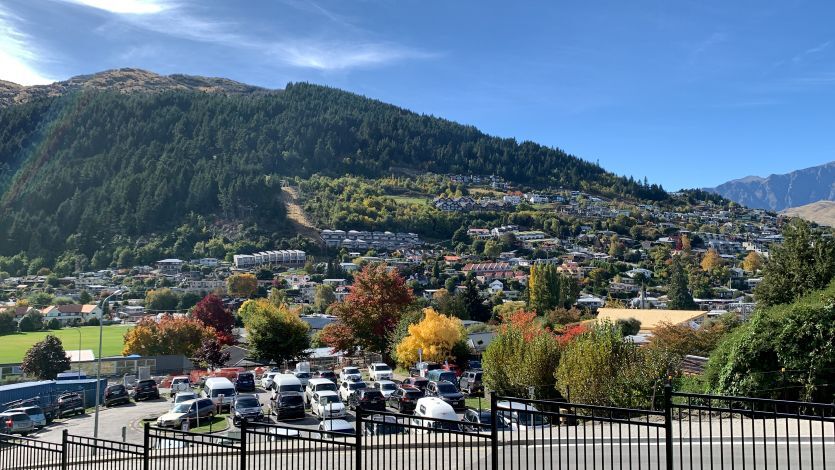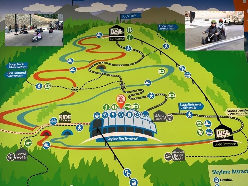 紐西蘭旅遊小繞了南島一圈後,回到起點也是終點的皇后鎮,他是南半球觀光第一大城,幾乎等同是紐西蘭南島的代名詞,並以高空彈跳,高空滑索,高空跳傘,滑翔傘,噴射汽艇等各項極限運動的重鎮出名,但我們向來不以追求極限為目標,僅僅預約了天空纜車和高速滑車體驗,正如其活動廣告所說,滿足一下我們想冒險的靈魂。從民宿出發,穿過市區,慢慢散步約廿分鐘到達纜車站,纜車將我們帶到海拔790公尺高的鮑伯峰,山頂除了餐廳,紀念品店,還有視野絕佳的觀景台,周圍山水景致一覽無遺。首先映入眼簾的是凸出於瓦卡蒂普湖畔的半島,半島前端的皇后鎮花園滿佈樹木,我們的民宿緊鄰花園,隱約可見。