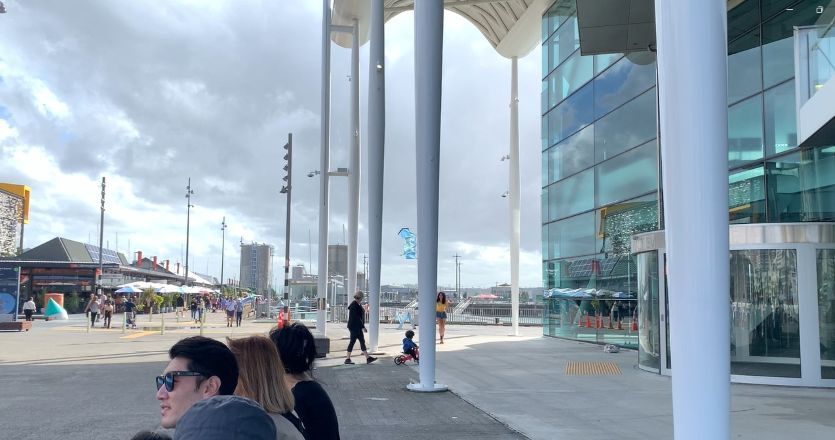 其實從皇后鎮搭機到奧克蘭市區再會合前已經分成二團,返台團的班機時間晚二小時,旅館安置行李,搭乘優步計程車,後發先至還比北島團更早到達,畢竟旅程僅剩餘半日奧克蘭。大家先在車站內,流連迷戀精品、美食店和公共空間中,好不容易踏出戶外,運轉手團員一時興起,大街長椅留下街頭獨坐的帥照,原來是回想起加拿大多倫多佳作啦。穿過馬路來到海邊,港灣停泊著各式各樣的古董船和現代遊艇,女兒導覽著沿路地標,紅磚色巴洛克風格建築的渡輪大廈,有紐西蘭樂活冰淇淋店的王子碼頭,海軍藍屋頂的海事博物館,和玻璃外牆極具通透感的高橋活動中心。
