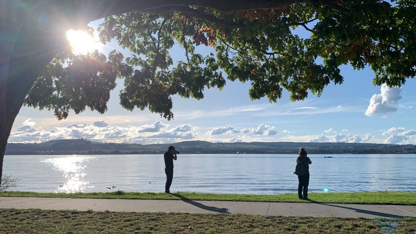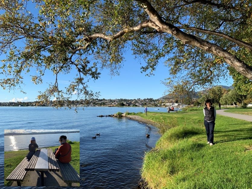 返抵陶波湖,午後和煦陽光在湖面灑下一片銀色光芒,美得令人屏息。大夥兒趁著離開小鎮前的最後時光,像湖面上的鴨子般悠閒,在岸邊沐浴著溫暖的日光,享受這份難得的靜謐。隔日將離開美麗陶波湖小鎮,代表已是這趟紐西蘭南北島自駕遊的尾聲,剩餘行程就只是回奧克蘭還車和搭機。入座湖邊木製桌椅,世界彷彿按下暫停鍵,看著天空雲好像累了,風好像倦了,我們不再討論下一個景點,也不再確認手機裡的地圖,心境滿足不想再移動腳步了。這一刻,旅途裡追逐目標的急躁、奔波掙扎的疲憊,隨著湖面波光粼粼中悄然消散,變換成紐西蘭最原始的色彩與呼吸,裝進滿滿回憶的行囊中。