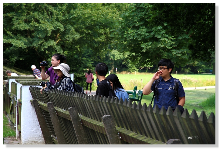 經過有著噴泉和白牆的豪華Park Hotel,一度讓我們懷疑公園入口確切位置,待進入幅員遼闊、原始自然的森林綠地,茂密樹林將車水馬龍都隔絕在外,散步其中,打從心中羨慕不萊梅市民擁有一處休閒放鬆的好地方。沿著水域河岸,特別設置動物農場區塊,禽鳥、驢騾、羊駝等可愛動物們和茅草屋頂房舍的視覺組合,療癒力超強,吸引許多遊客駐足柵欄外圍觀,算是公園中較為熱鬧處,另一處則是不時傳出開心喧囂笑聲的曲折水道。