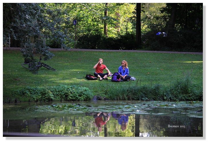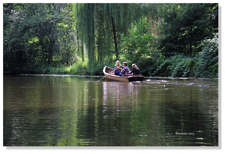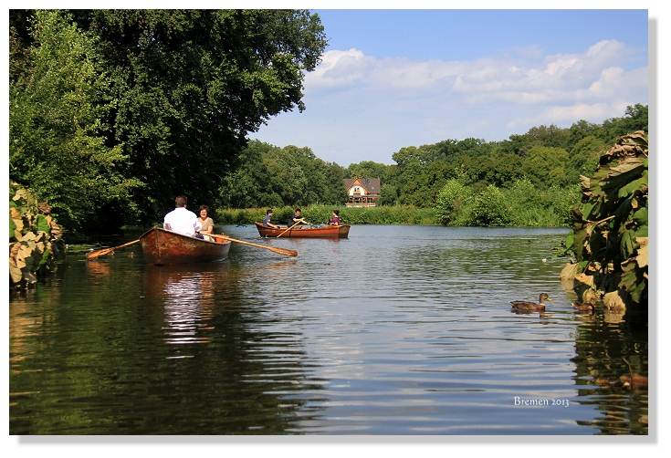 年初來自巴西的少年在台灣日月潭體驗了人生第一次的獨木舟經驗佔據媒體版面成了熱門新聞,那台灣人旅遊德國不萊梅市民公園,划槳環湖一周消磨一下午的時光也能算是異國特別的經驗吧!顧名思義市民公園是不萊梅人平日休閒活動的地方,和觀光旅遊必去的舊城區有些距離,通常不在旅行社規畫行程裡。自由行就是要走和別人不一樣的路,從中央車站後站緩緩步行到此,因為我們想要實習體驗過得像個不萊梅人!