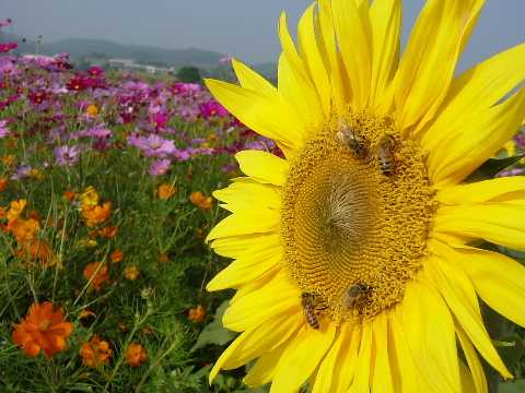 曾在雲南見一女孩,拿著大盤子吃著什麼,細看,是一朵向日葵,沒晒乾,就生的一粒一粒的剝下來吃,還請我吃呢!