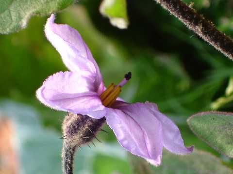 原產地為印度,約在四、五世紀時就傳入中國。茄子植株生育強健,性喜溫暖濕潤的氣候,茄子花為完全花,花瓣呈現夢幻紫色,花藥二室於柱頭成熟時裂開,柱頭突出於花藥上,晨光中悄悄探出頭來,靜靜等候與昆蟲的第一次接觸。