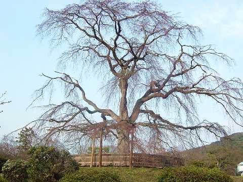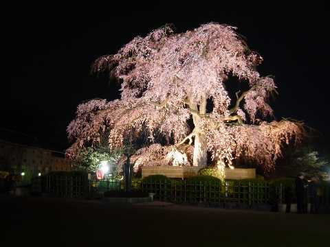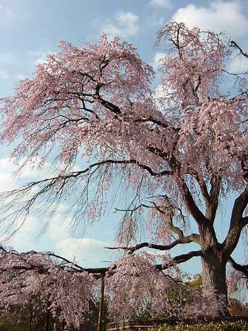 寬廣的円山公園,種植約八百多株櫻花,單是美姿被日本人公認為「天下一品」的枝垂櫻,從顏色的不同可分枝垂櫻、紅枝垂和晴雨枝垂等品種。園內最有名的枝垂櫻樹,就屬高達13公尺,號稱有200歲的「祇園枝垂櫻」,花形屬八重櫻,樹枝呈下垂條狀,極容易辨識。她是紅枝垂櫻,每年花開過程與進度照例成為眾所矚目的盛事。