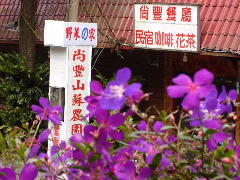 尚豐山蘇農園園主原來在三義從事木雕產業,因緣際會到南庄山上種山蘇,經營餐廳和「合法民宿」。園區擺設都是三義出名的原木桌椅,選擇戶外充滿芬多精的林中一隅,邊用餐邊聆聽山溪潺潺。菜單上食材均來自本地不須農藥的作物,尤其主人專業栽植質地細膩、翠綠、口感佳的山蘇是一定要品嚐的啦!
