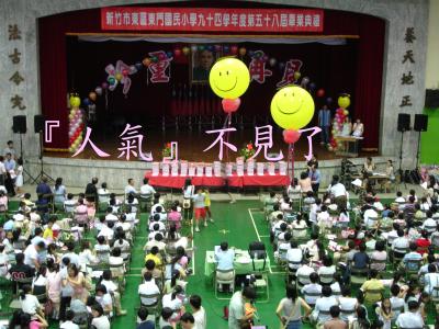 沒有啦,以上姑且稱之為「準畢業生家長的異想世界」,在等候典禮開始之前,獨自望著會場胡思亂想,只因禮堂兩側的訓詞,自觀禮台的角度竟發現「人」「氣」二字不見了。