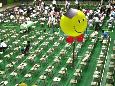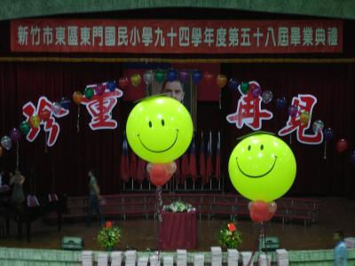 會場佈置饒富趣味,大大的黃色氣球冉冉上升,戴上學士帽和往上彎的嘴角透露出畢業生高興心情,隨著空調送風左飄右移,又像青春稚氣一般尚未安定。在師長教誨下歷經六個寒暑,此時此刻柵欄即將開啟,就要換他們踏出校門,當家作主。