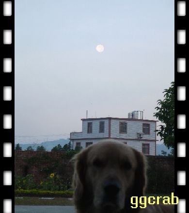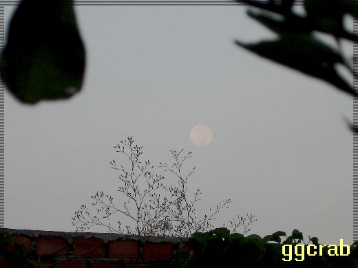 今年的月是這幾年中最大最亮的,萊德不知曉月夜,倒是懂得欣賞清晨黯淡的月。早上六點半,大大的月亮猶掛在西方的天空,以肉眼看去,要吳剛有吳剛,說嫦娥是嫦娥,搞不好熬了一整夜的嫦娥妹子,還在擔憂萬戶烤肉造成高濃度的空氣浮塵微粒而失眠,依依不捨,不願回去?
