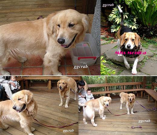 前肢頂著朱紅指甲油,身披仿皮草圍巾,時髦的Monica小姐尾隨服務生前來,看見萊德竟然就不走了,伺機徘迴游走在我們的咖啡座四周,雖說我家萊德風流倜儻,一時「煞」到不無可能,打聽之下才知道,Monica小姐大概誤認萊德為店家豢養的黃金了。獲知院後有萊德朋友,過去未曾和其他黃金正面相逢過,蠻期待會面機會和結果,只要不是加菲貓約王菲,張飛打岳飛就好!