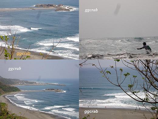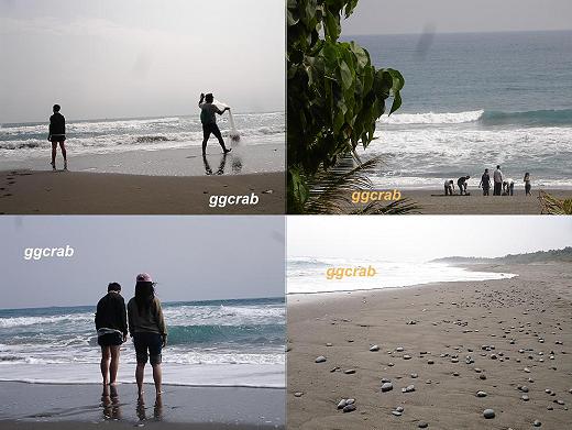 金樽海灘仍維持自然原始,自陸連島起向南綿延長達三公里,遠處是幾組放長線、釣大魚的釣者,除此尚無其他遊客,一對兒女童稚純真,不管暮冬衣服厚重,三兩步摺起褲腳下水踏浪去了,矜持的父母放不下顧忌,時而迴繞沙灘漫步,時而靜坐漂流木聽濤,著實滿意這個新發現、清閒的好地方。