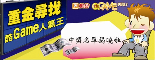重金尋找酷 Game 人氣王 得獎名單公佈