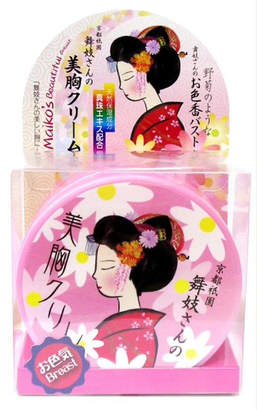 京都舞妓非常注重自己的身材,尤其是胸部與體香,是掌握藝技神態與魅力的基本工夫,因此特別講究。數百年來,在文化與科技的融合發展下,京都藝技美妝保養系列商品皆有其獨特的內涵:「真珠柔白‧彈力美胸按摩乳」含有高貴真珠萃取精華、大豆萃取精華,並添加深海鮫魚油等三種美容成分,引導彈性、柔白、潤澤細緻肌膚,是舞妓們每天使用的美胸保養乳液;「舞妓花香水系列香水膏」含天然礦物櫻花植物香油卵磷脂、維他命 E、細緻淡雅的櫻花香味,包裝精美復古,適合帶在包包中隨時補充,且用量很省,只要輕輕擦在手腕脈搏上,香味比香水還持久。