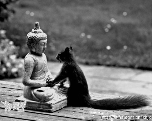 即是這隻小松鼠, 應該很有靈性.....牠似乎懂得向佛陀祈求!