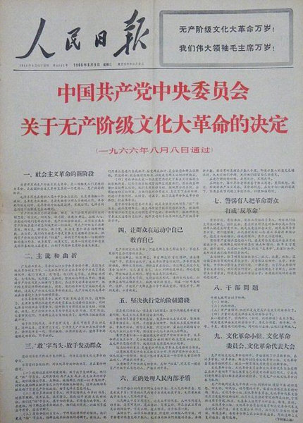 中國共產黨中央委員會關於無產階級文化大革命的決定
