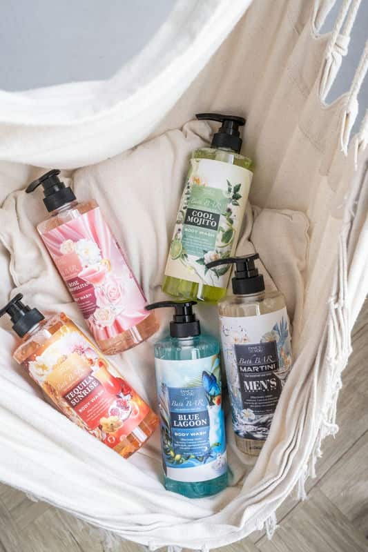更棒的是,這些產品不含酒精和苯酚類防腐劑,添加了維他命B3、B5和多重植物萃取,清爽保濕效果絕佳!洗完澡後的肌膚柔嫩滋潤,整個人都散發著微醺的幸福感。
