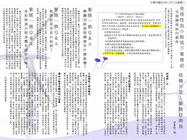 並有好友投稿至中華民國紫斑症病友會與各位朋友們一起分享紫斑症的心路歷程