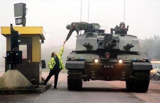 駛向一個高於兩旁像個高堤一般的窄道路 衝下一個陡坡