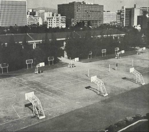 以望遠鏡 偷偷觀察著對面的附中南樓